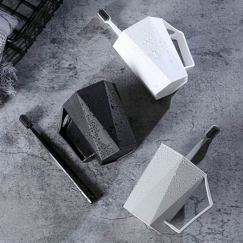 Home use diamond-shaped mouthwash cup, creative Nordic style, light luxury couple diamond toothbrush cup with handle.